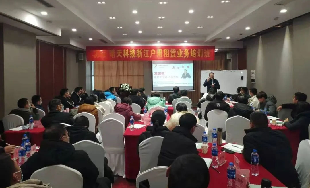 2021年1月14日至2021年1月15日,晴天科技在金華申華商務酒店召開為期兩天的晴天科技浙江戶用租賃業務培訓班,來自浙江各區域的優秀的代理經銷商參與了本次培訓。