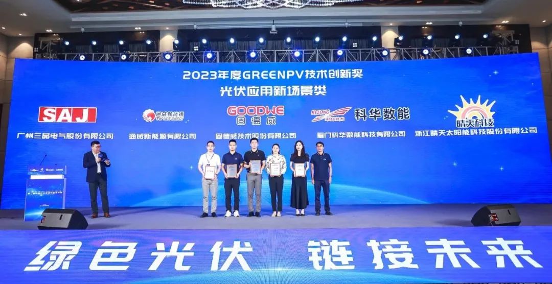 晴天科技憑借電站開發、建設的多場景應用的開拓與創新,榮獲“2023年度GREEN PV技術創新獎”。