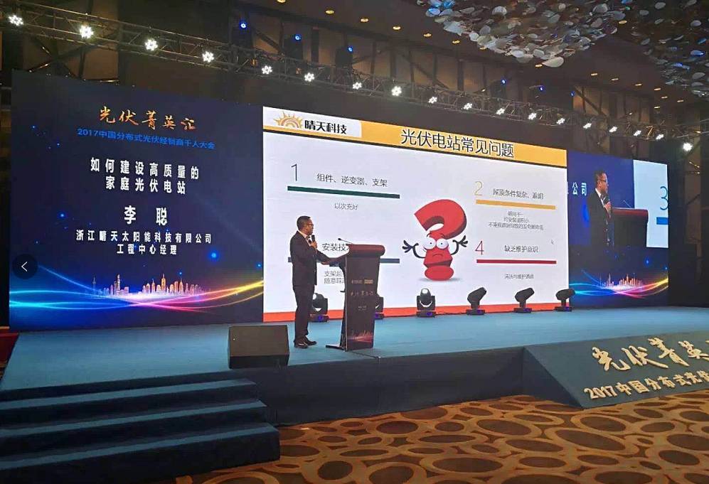 晴天科技憑借創新技術與可靠服務品質榮膺“2017年度最受歡迎分布式光伏系統集成商”。