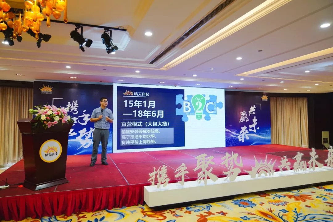 隨后,晴天科技副總裁曹飛翔先生對戶用戰(zhàn)略合作模式及新產(chǎn)品進行了發(fā)布,晴天科技戶用業(yè)務起家,從直接面向消費者轉型到服務專業(yè)安裝商、經(jīng)銷商,這是一次跨越,這更是晴天科技經(jīng)過長期沉淀,真正具備金融和產(chǎn)品供應優(yōu)勢后的必然。戶用市場已經(jīng)是光伏平價的最后一條戰(zhàn)線,只有發(fā)揮各方優(yōu)勢、真誠合作才能將戶用市場持續(xù)做大。同時,曹總也發(fā)布了全新戶用產(chǎn)品全方單晶,正是在新趨勢召喚下應運而生的高效產(chǎn)品。相信全新的產(chǎn)品必能開拓全新渠道。